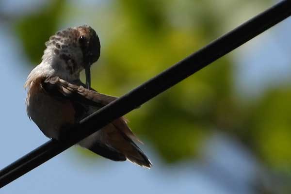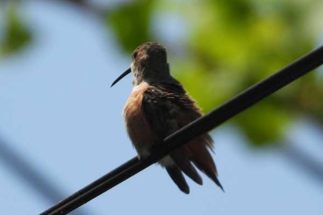 The same hummingbird who has lived having babies in the Avocado tree is back again.