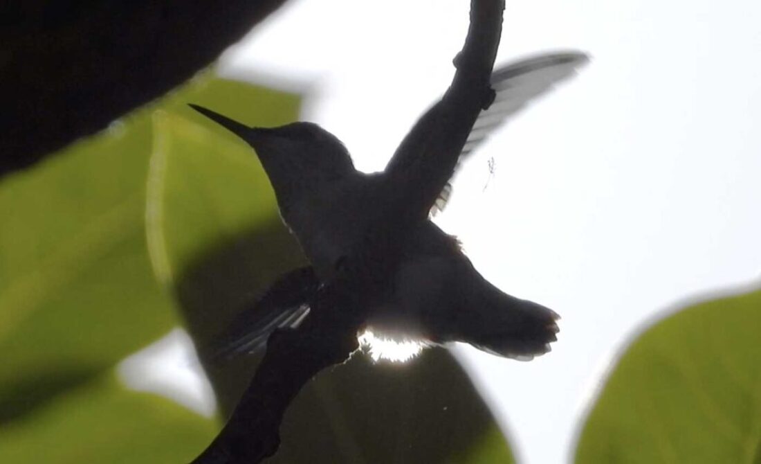 On May 6th, 2021 the hummingbird began building her nest. On day two of building it, I filmed her mating in the air and on the ground. She began creating an amazing nest. Her skill to use spiderwebs, dandelions and other elements were by design God’s work.